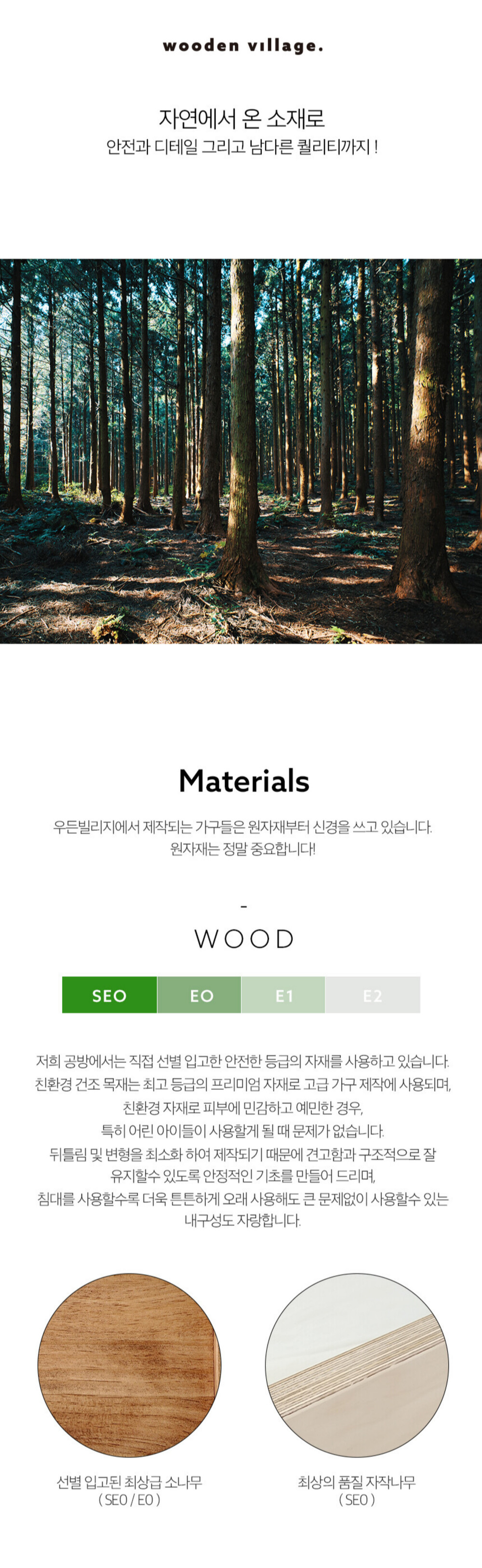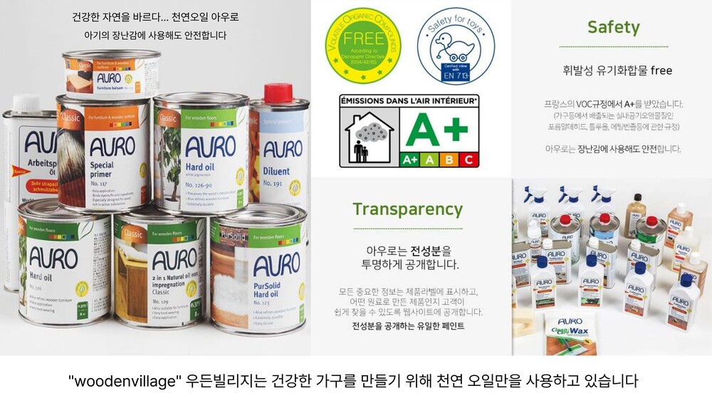 우든빌리지의 모든 가구들은 친환경을 기본으로 생각하며